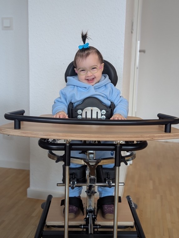 Neue Fähigkeiten zu erlernen braucht viel Zeit, Geduld und zahlreiche Wiederholungen. Therapien wie Physiotherapie, Ergotherapie und Logopädie begleiten sie regelmäßig. Eine Heilung gibt es bislang nicht, nur unterstützende Maßnahmen. Und doch sind es die kleinen Fortschritte, die zählen. Jede Entwicklung, jeder neue Schritt wird zu einem echten Meilenstein. Sie ist aufmerksam, interessiert und voller Lebensfreude. Ihr Lachen steckt an und erinnert daran, wie wertvoll selbst kleinste Erfolge sind.