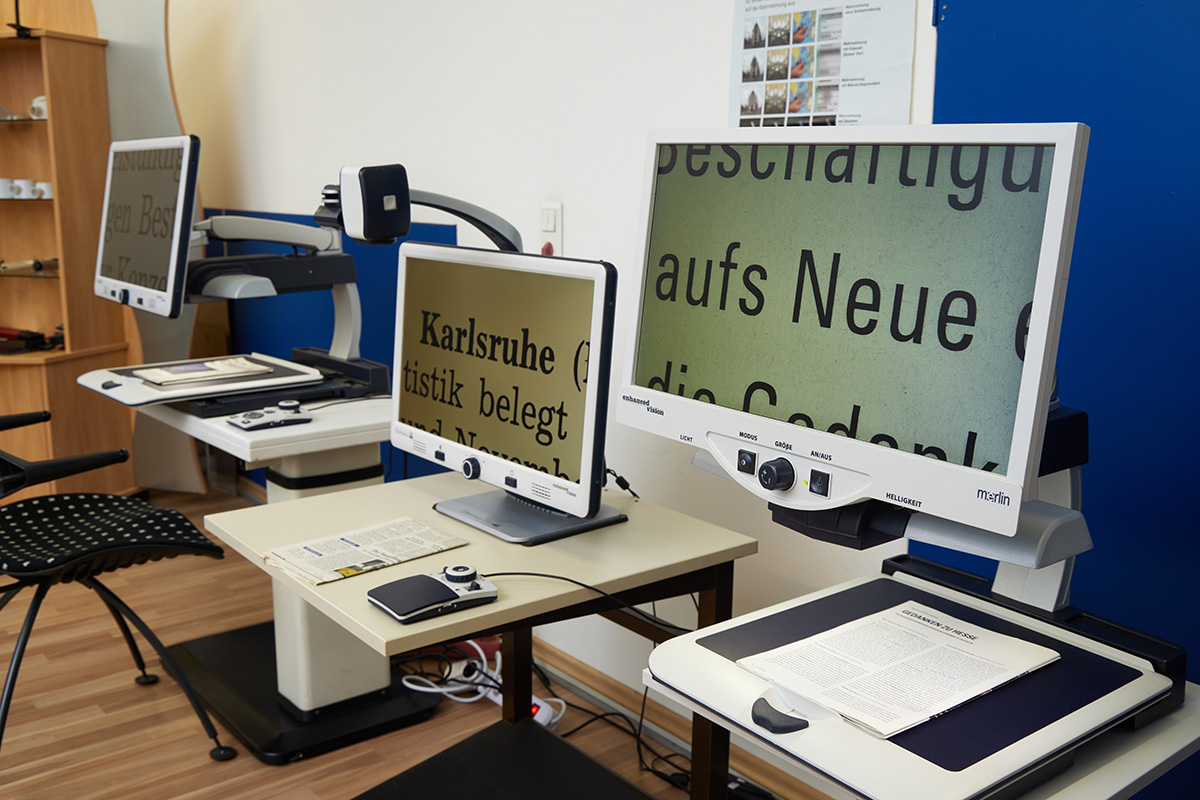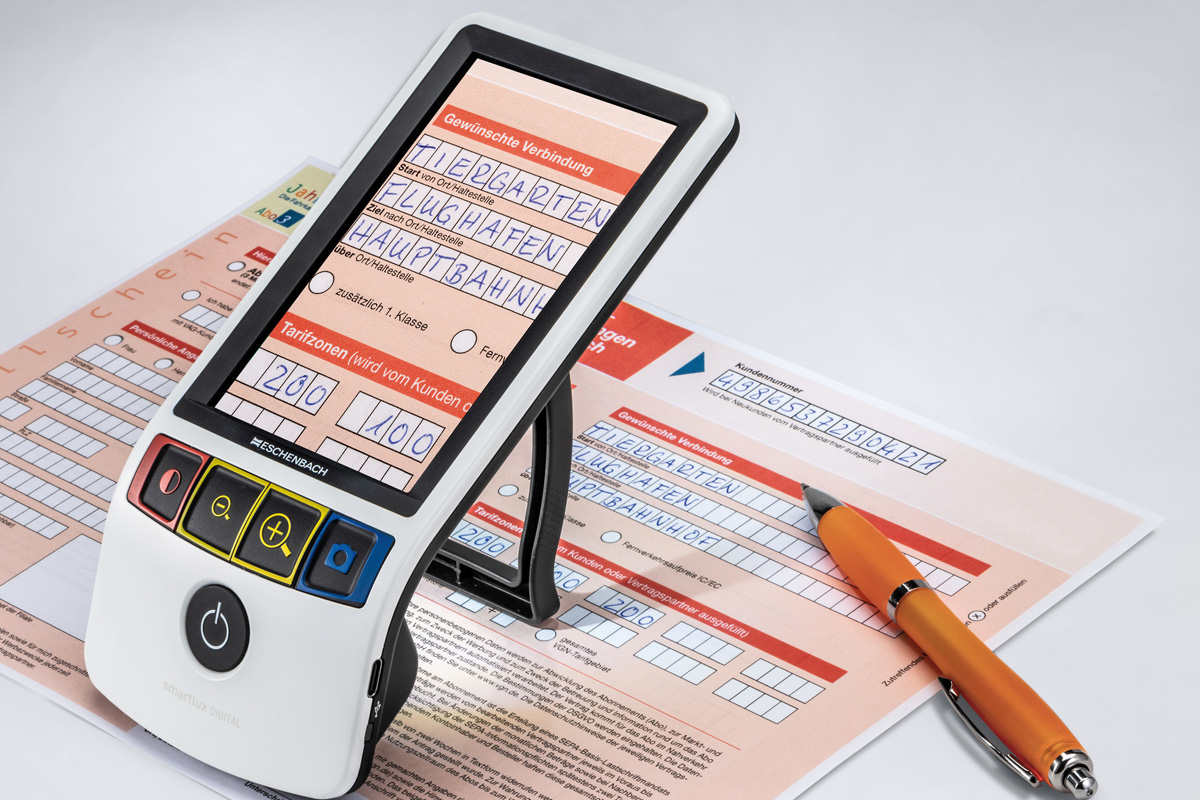 Ergänzend zu herkömmlichen Lupen beraten wir Sie auch gerne zu Einsatzmöglichkeiten und Kosten bei elektronischen oder digitalen Lupen. Die Sehhilfe arbeitet mit einer Minikamera, die die Schrift auf einem kleinen Bildschirm vergrößert darstellt. Zudem können Kontraste verstärkt und Schrift- und Hintergrundfarben verändert werden.